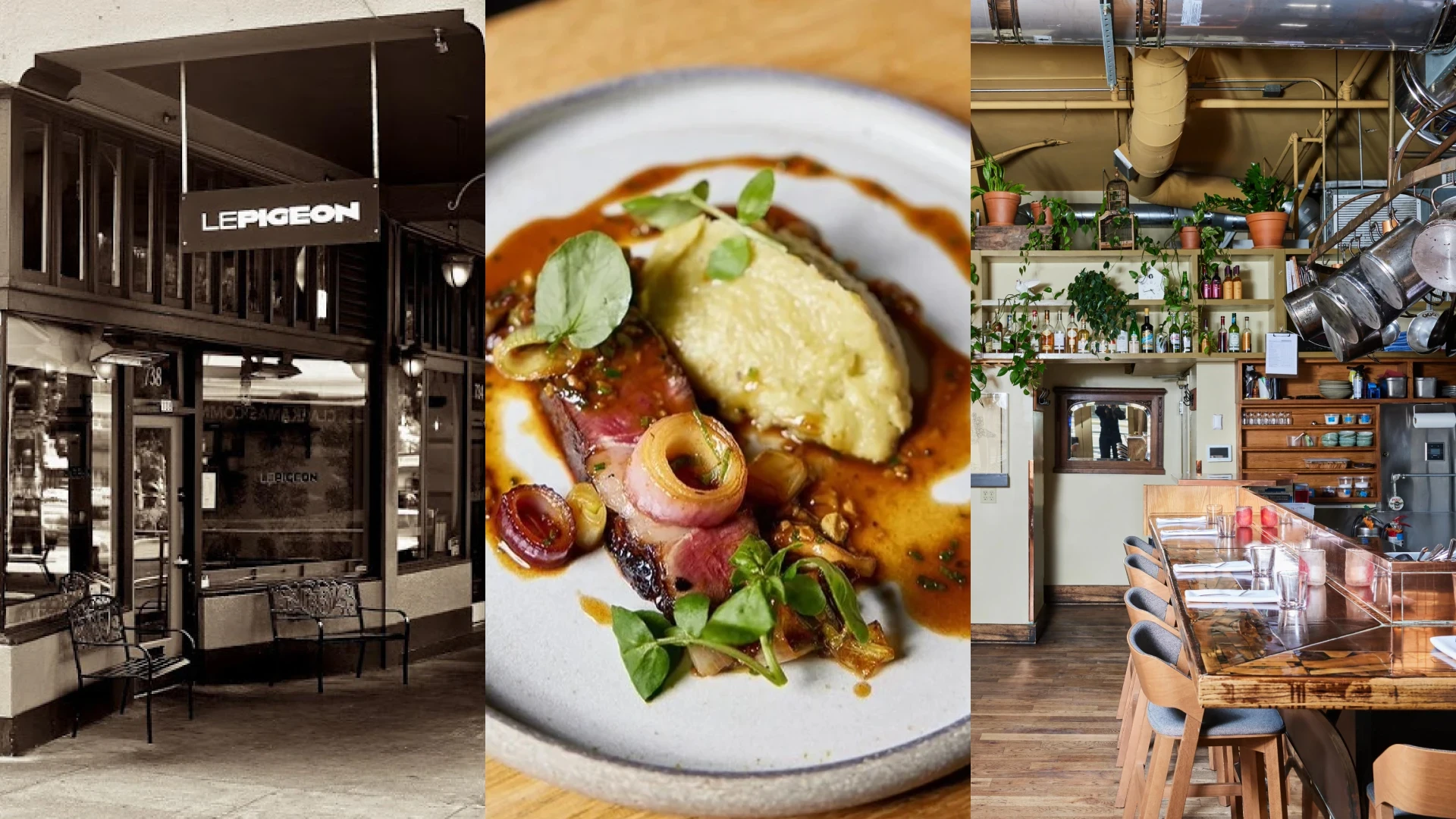 Le Pigeon is a French-inspired Portland restaurant owned by award-winning Chef Gabriel Rucker. Known for its seasonal menu, intimate atmosphere, and blend of traditional French techniques with modern flavors, it has earned multiple James Beard Awards. The cozy space features communal tables and an open kitchen for a uniquely lively dining experience.