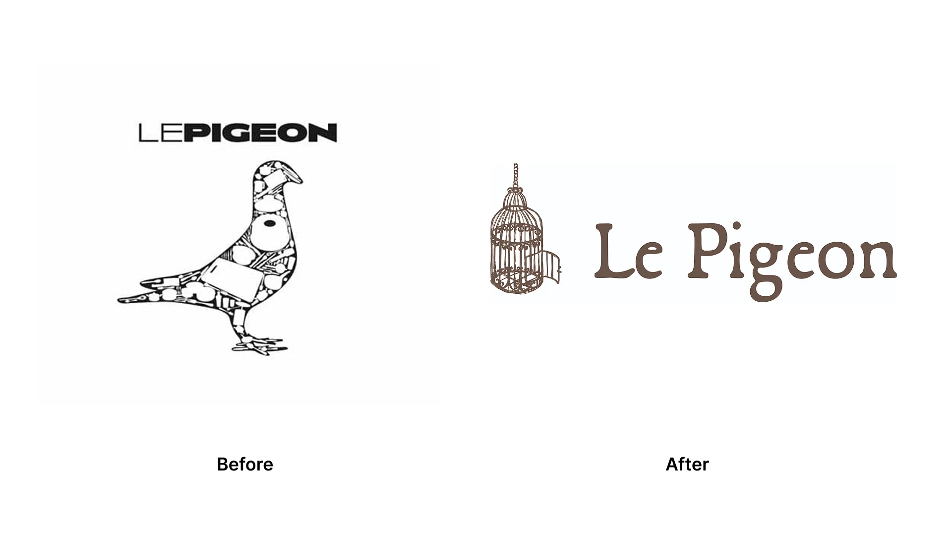 Although Le Pigeon includes incredible French charm and cuisine, its visual identity doesn't fully capture the restaurant's authentic spirit. Reimagining its brand was an opportunity to honor Chef Rucker's award-winning vision while creating a stronger connection between the intimate dining experience and its visual presence.