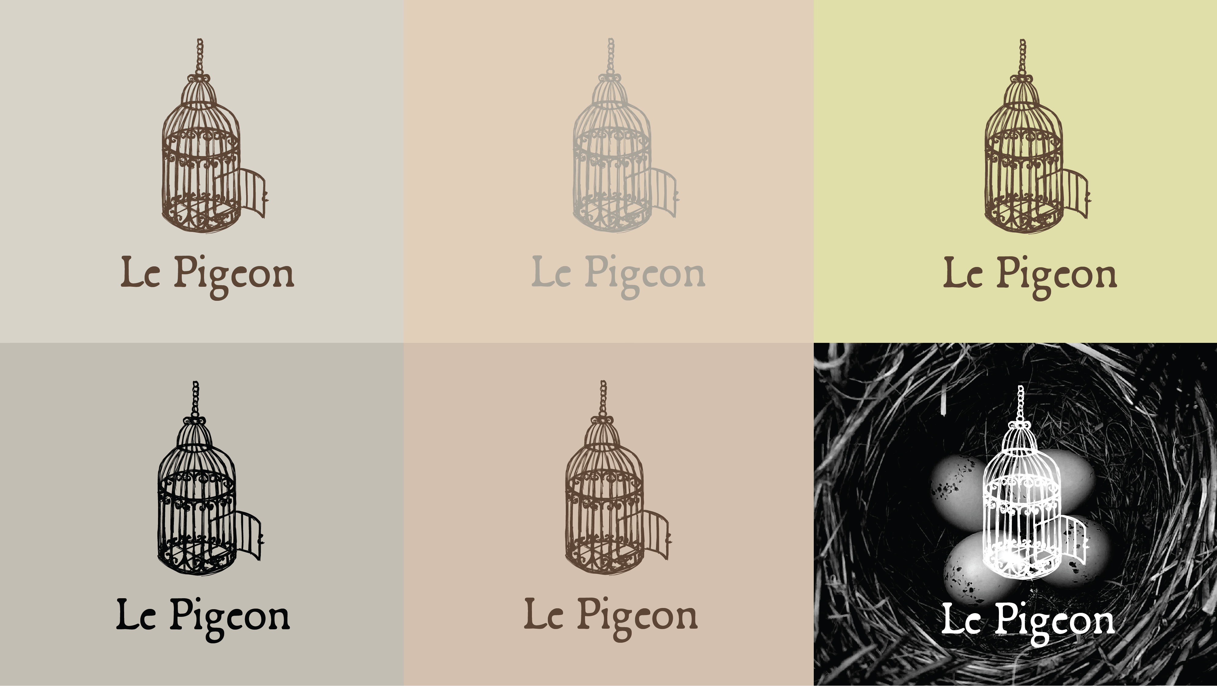 After receiving critiques, I selected an open birdcage design that subtly alludes to a pigeon without directly depicting one. To support this concept, I created three additional brand identity elements that reinforce the pigeon theme through abstract visual language.